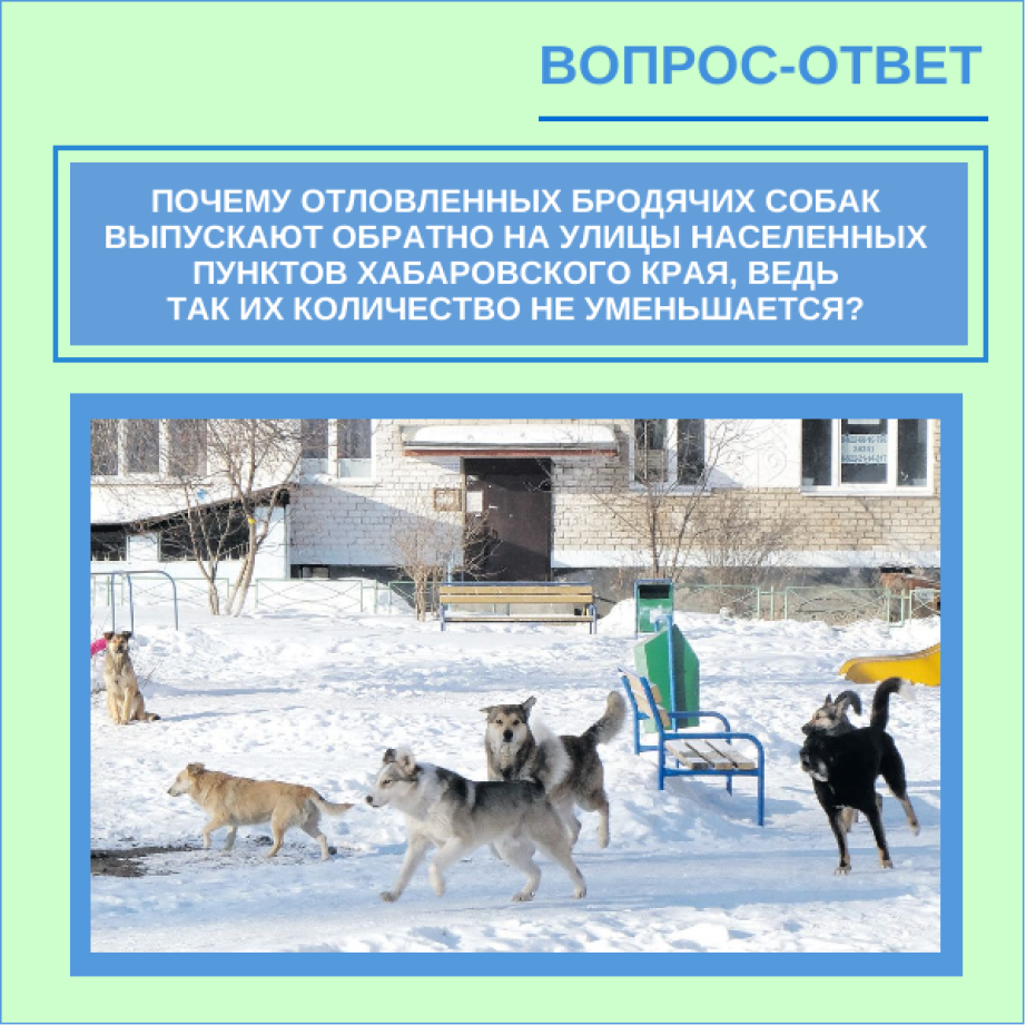 Из рубрики "Вопрос-ответ": Почему отловленных бродячих собак выпускают обратно на улицы населенных пунктов Хабаровского края, ведь так их количество не уменьшается?