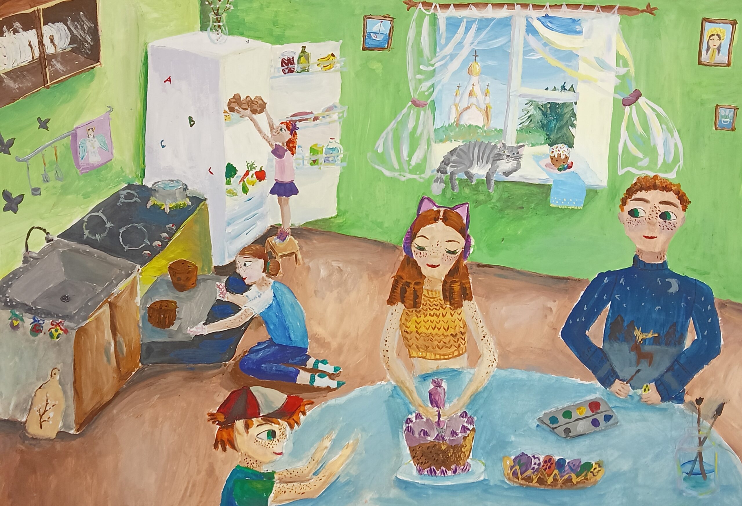 Разноцветный и прекрасный мир, наполненный тёплыми лучами солнца и добрыми, весёлыми событиями запечатлён гуашью, технике аппликации с графической доработкой маркерами и графике. Каждый ребенок имеет возможность найти свой путь. Работая в пейзаже, в портрете он учится видеть себя, своих близких, свою малую родину.