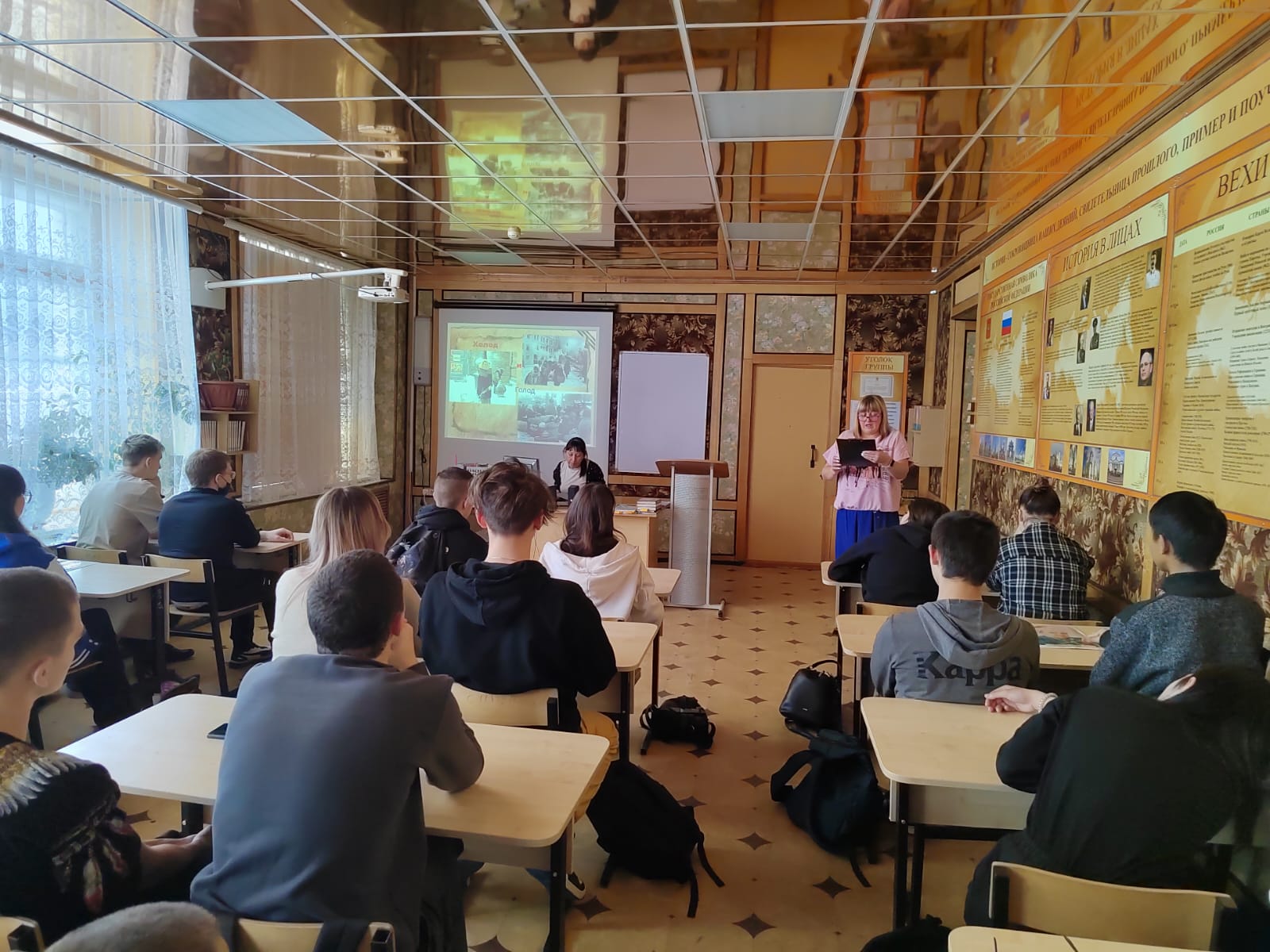 На классном часе присутствовали группы 1 и 2 курса. Классный час проводился с целью привлечь внимание обучающихся к истории нашей Родины, воспитывать чувства патриотизма, сознательности, сопричастности к великим историческим событиям.