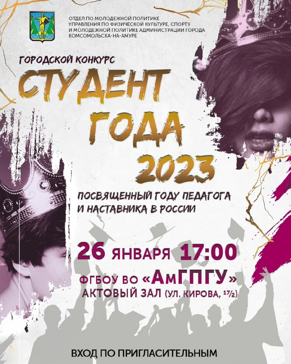 26 января в 17:00 в актовом зале Амурского гуманитарно-педагогического государственного университета состоится городской творческий конкурс «Студент года 2023».