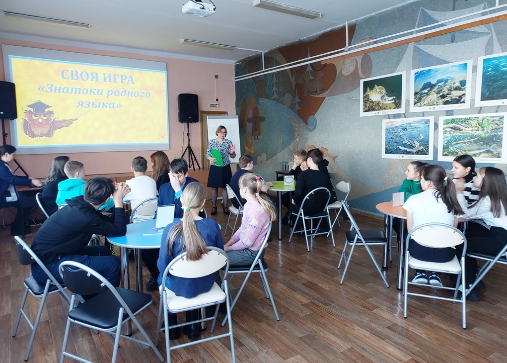 В конференц-зале Районной библиотеки для подростков была организована Своя игра «Знатоки родного языка», все задания были посвящены русскому языку и литературе. В игре было девять категорий: «Части речи», «Одним словом…», «Пословицы и поговорки», «Русская литература», «Что бы это значило?», «Сказка ложь, да в ней намек», «Знаки препинания», «Алфавит», «Фразеологизмы». Ребята поделились на 4 команды. Участники старательно выполняли задания, показав свои способности, смекалку, сообразительность в знании родного языка. Самые грамотные получили призы.