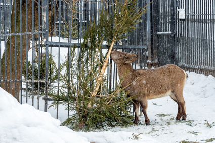 Хвойные деревца, ещё недавно радовавшие нас, теперь могут послужить украшением и обустройством вольеров, а также витаминной подкормкой для копытных животных. Ёлку можно привезти в зоосад самостоятельно и передать её у нижних ворот (проходная служебного входа).
