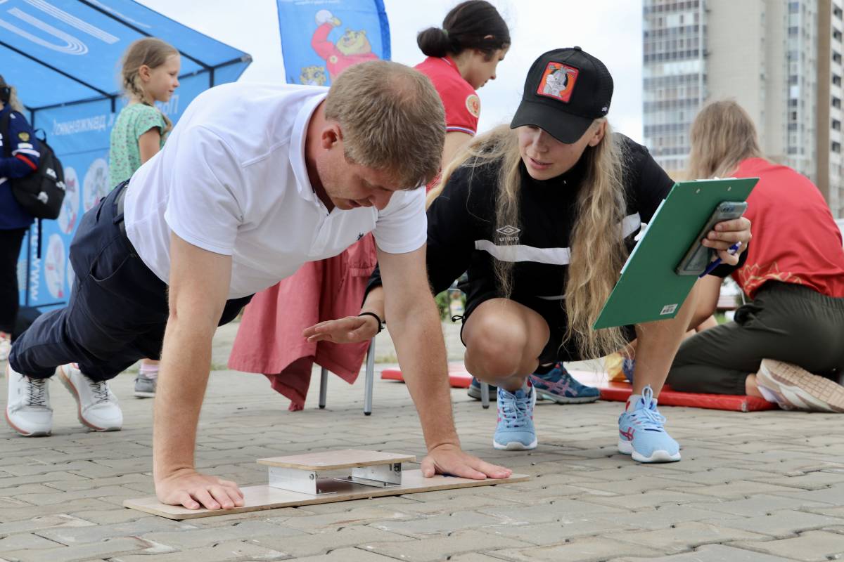 Партийцы попробовали свои силы в сдаче нормативов комплекса «Готов к труду и обороне». Желающим проверить себя предложили отжимания, подъем корпуса из положения лёжа, прыжки в длину и упражнение на гибкость.