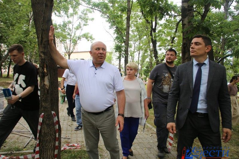 Благоустройство сквера на улице Ворошилова проверил мэр Хабаровска