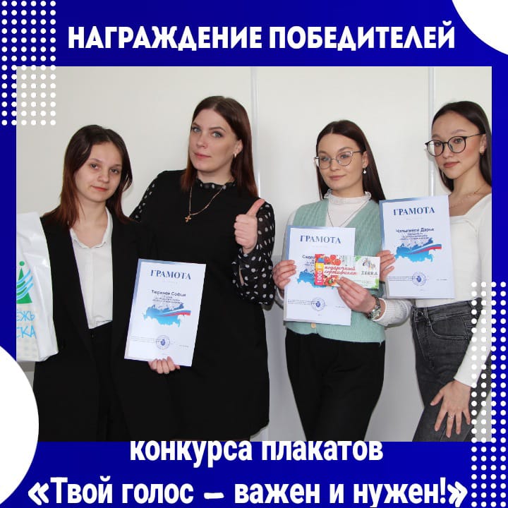 2 февраля в отделе по молодежной политике, физической культуре и спорту администрации города прошло подведение итогов городского конкурса плакатов «Твой голос- важен и нужен!» Победители были награждены грамотами и ценными призами