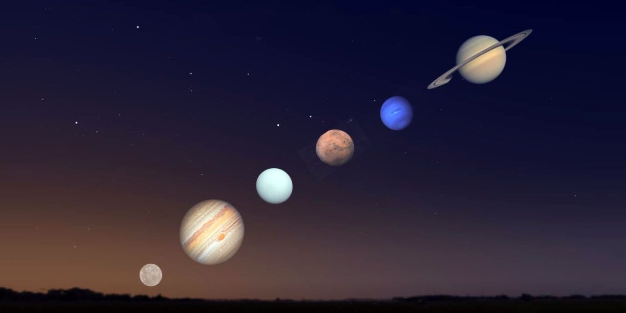 3 июня произойдет одно из самых ожидаемых астрономических событий этого года. Сразу шесть планет Солнечной системы выстроятся в ряд: по одну сторону от Солнца в секторе около 90 градусов окажутся Меркурий, Марс, Юпитер, Сатурн, Уран и Нептун.