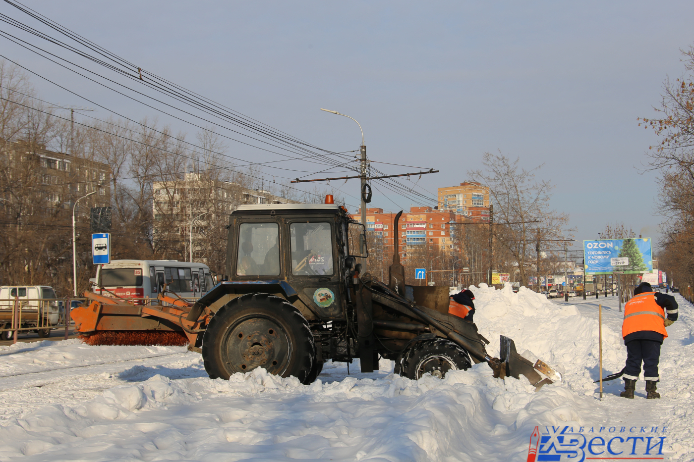 Уборка снега в Хабаровске после циклона продолжается