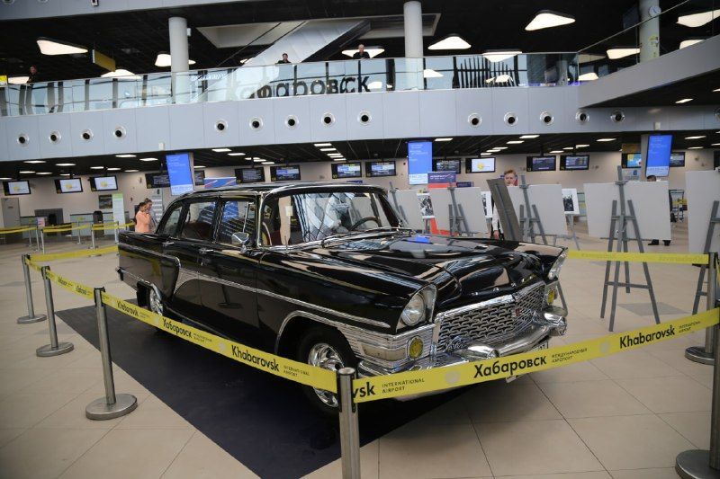 Выставочное пространство, организованное на первом этаже зала регистрации, украсил еще один атмосферный экспонат — автомобиль ГАЗ-13 «Чайка», аналогичный «Чайке» первого секретаря Хабаровского крайкома КПСС Алексея Черного, которая была участником кортежа, встречающего Юрия Гагарина 61 год назад. Основные передвижения Юрия Алексеевича по Хабаровску проходили на кабриолете ЗИС110-Б — служебном автомобиле командующего ДВО. Автомобиль, представленный в аэропорту Хабаровск, предоставил клуб «Авторетро-100».