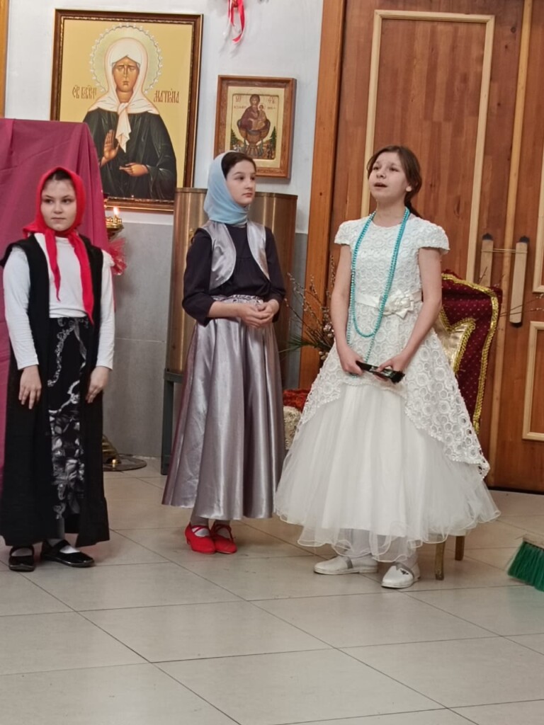 В спектакле приняли участие не только воспитанники, но и мамы, которые сыграли жен-мироносиц. С большой теплотой прихожане посмотрели наше представление. 30 апреля, воспитанников воскресной школы Прихода святого праведного воина Феодора Ушакова, ждут в библиотеке имени Горького ветераны и дети войны.