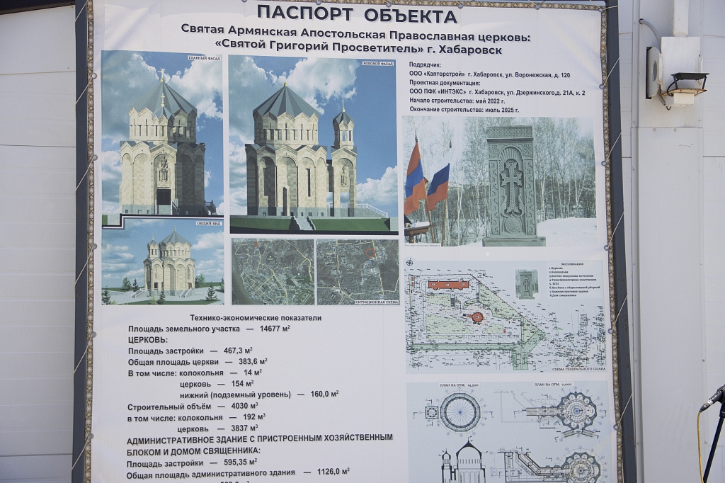 "Ваше высокопреосвященство, дорогие земляки! Поздравляю вас с праздником чина освящения основ строящегося храма Святого Григория Просветителя. Благодарю армянское землячество за решение построить храм на хабаровской земле — этим вы оказали нам большое доверие. Вы сильная и дружная нация, которая думает о будущем детей, ведь храмы строятся для них, для будущих поколений. Они будут хранить и преумножать те ценности, которые мы им передадим", — обратился к собравшимся мэр Хабаровска Сергей Кравчук.