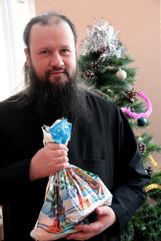 После общей молитвы под пение праздничных колядок в исполнении студентов Хабаровской духовной семинарии и архиерейского диакона Рустика Карташова владыка Артемий и священнослужители подарили всем пришедшим рождественские сладкие подарки.