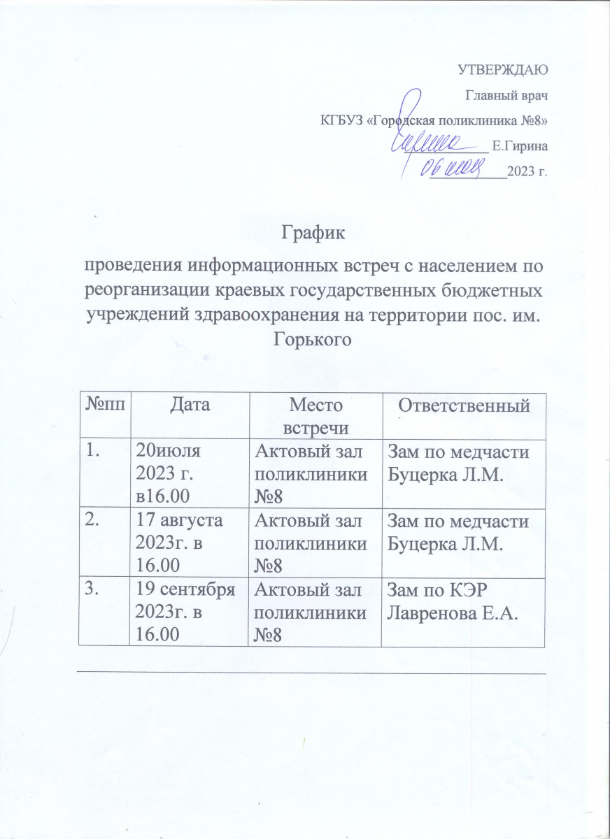 График проведения информационных встреч с населением по реорганизации краевых государственных бюджетных учреждений здравоохранения на территории пос. им. Горького