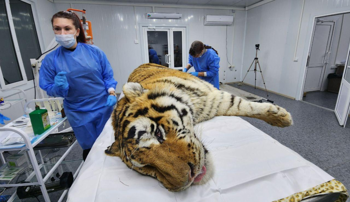 Отловленный в Хабаровском крае тигр в тяжёлом состоянии